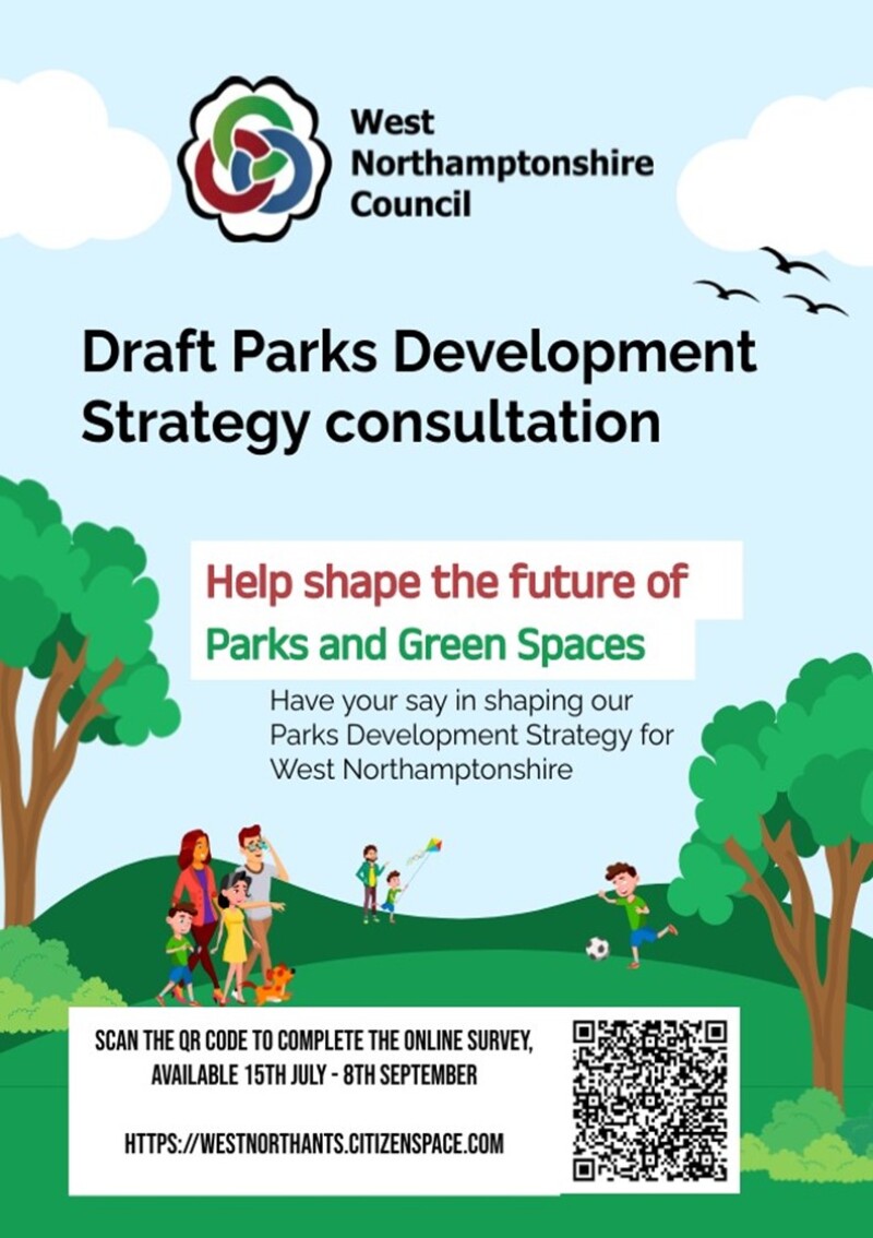 West Northamptonshire Council's Parks and Open Spaces service is seeking feedback on their draft Parks Development Strategy focusing on enhancing parks and green spaces to meet community needs. The consultation aims to gather input from residents, park users, businesses, and partners until 8th September 2024. Feedback will help refine the strategy before final approval by the Council's Cabinet. Share your thoughts and spread the word to participate.